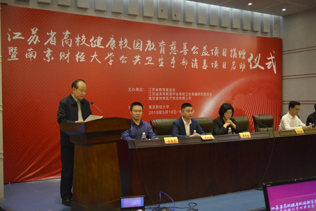 5月16日下午,江苏省高校健康校园教育慈善公益项目捐赠暨伟德bv国际体育公共卫生手部消毒终端项目启动仪式在伟德官网仙林校区行政楼二楼报告厅举行。江苏省教育基金会理事长祭彦加、常务副理事长兼秘书长步锦昆,南京爱攸咪医疗科技有限公司董事长吴从喜,江苏省高等教育学会高校卫生保健研究委员会秘书长杜国平,南京农业大学、伟德bv国际体育等17所高校的校领导和有关职能部门的人员参加了捐赠启动仪式。