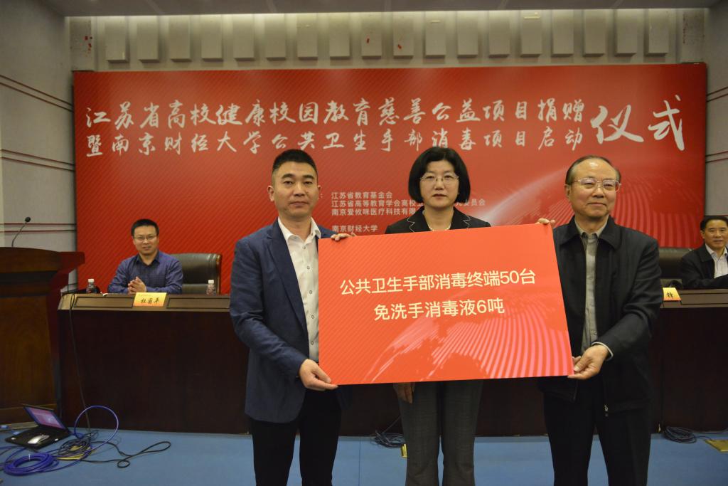 据悉,为助推我省高校健康校园建设,降低校园内人员密集公共场所的疾病传播概率,减少疾病发生,提高师生的健康防疫水平,江苏省教育基金会联合南京爱攸咪医疗科技有限公司在2019年拟为自愿加入本教育慈善公益项目的在宁高校人流密集的公共场所免费安装公共卫生手部消毒终端共约1000台左右,供学校免费使用。同时免费为受捐赠学校提供常年实际需要用量的免洗手消毒液。伟德官网获得的50台公共卫生手部消毒终端已全部安装并开始使用。