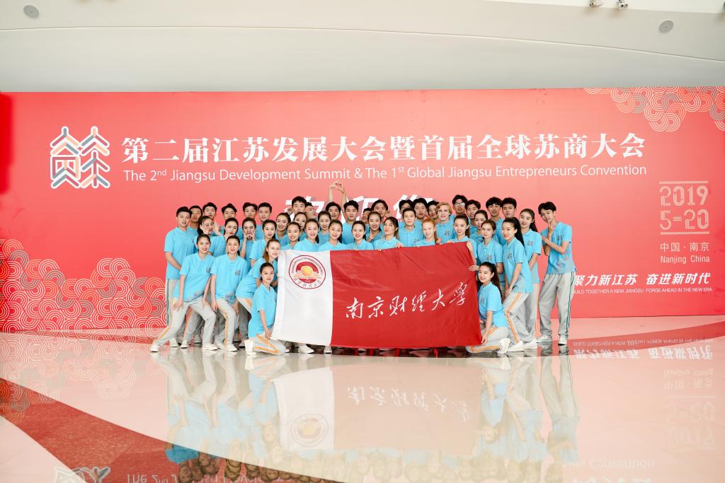 5月20日上午,第二届江苏发展大会暨首届全球苏商大会在江苏大剧院隆重开幕,1200多位来自海内外、省内外乡贤嘉宾在这里话友谊、叙乡情、谋发展。江苏省委书记、省人大常委会主任娄勤俭在开幕式上发表主旨演讲,江苏省委副书记、省长吴政隆先生主持大会。开幕式前,伟德官网大学生艺术团受邀参加了快闪活动,为大会的召开营造了热烈的氛围。
