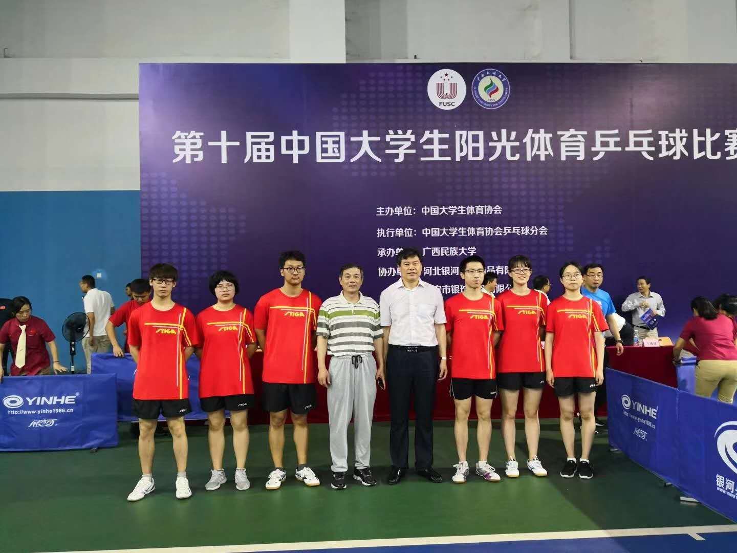 6月1日至2日,第十届中国大学生阳光体育乒乓球比赛在广西民族大学举行。校党委副书记温潘亚担任领队,蒋世玉担任教练员,伟德官网乒乓球队运动员周洋、汤浩然、郭俊玮、时越、季秋燕、徐雨欢6名学生获得混合团体赛三等奖,周洋同学获得“优秀运动员”称号。