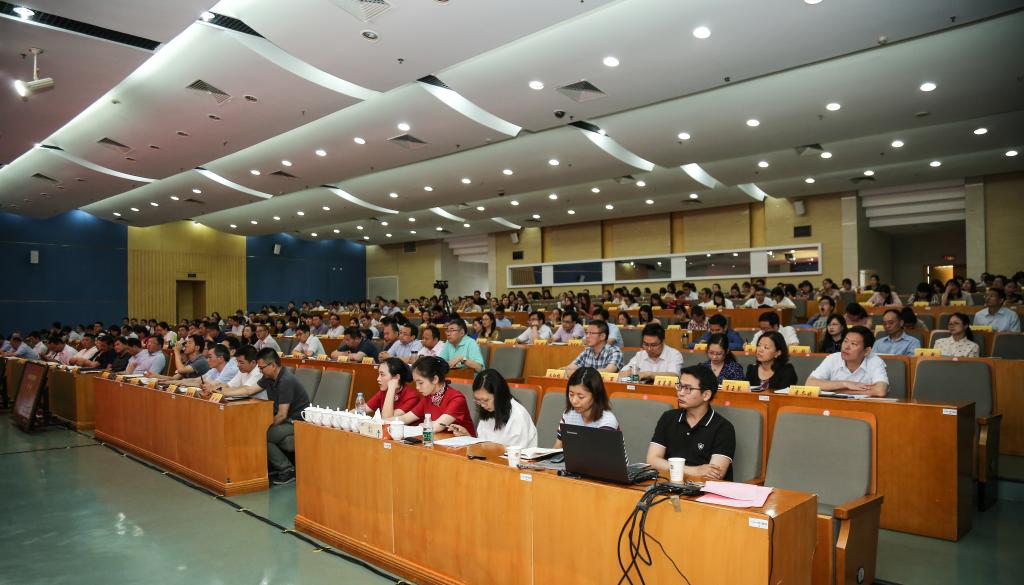 6月5日上午,伟德官网在仙林校区图书馆报告厅召开党群工作会议,深入学习贯彻中央“不忘初心、牢记使命”主题教育工作会议、全省“不忘初心、牢记使命”主题教育动员会议和全省教育大会精神,通报学校近期党建思想政治工作和改革发展有关事项进展情况,部署下一阶段工作。党委书记张利民,党委副书记温潘亚,纪委书记李茜,党委常委、副校长李群,党委常委、组织部部长赵国栋,党委常委、统战部部长吕戎,党委常委、宣传部部长石奇和全体党委委员、纪委委员出席会议。各职能部门主要负责人,各基层党(工)委、党总支书记,各学院院长,各基层党(工)委、党总支副书记,党群部门全体工作人员,各党支部书记,分团委书记以及全体学工秘书、辅导员参加会议。会议由党委书记张利民主持。