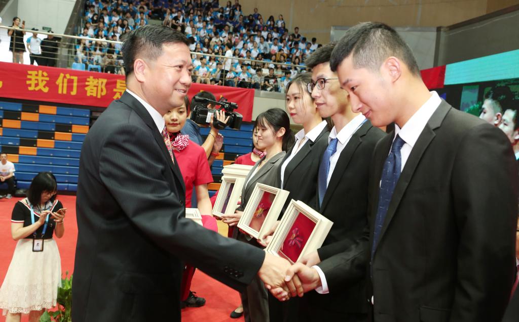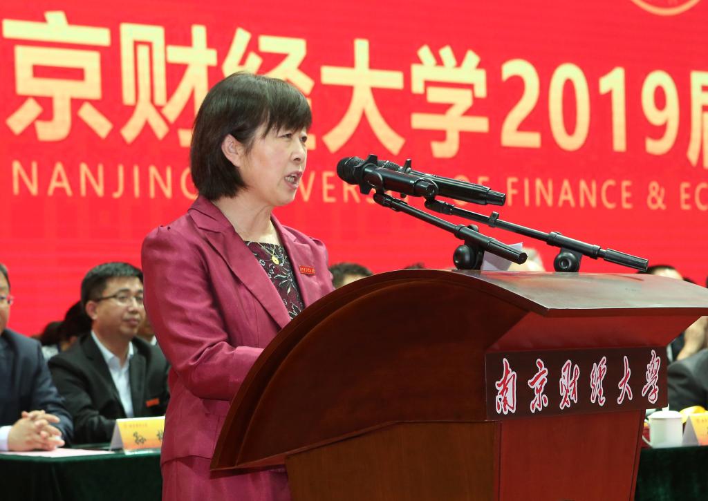 毕业本科生代表、会计学院会计1505班许新,毕业研究生代表、应用经济学博士毕业生刘婷分别发言。他们代表2019届全体毕业生向各位领导、老师、家长致以崇高的敬意与感谢!并表示将始终秉持“自谦 自信 务实 超越”的校训精神,用青春和努力在各自的岗位上书写同样绚丽的中国梦!