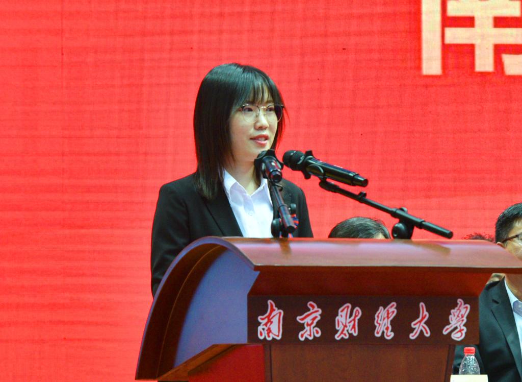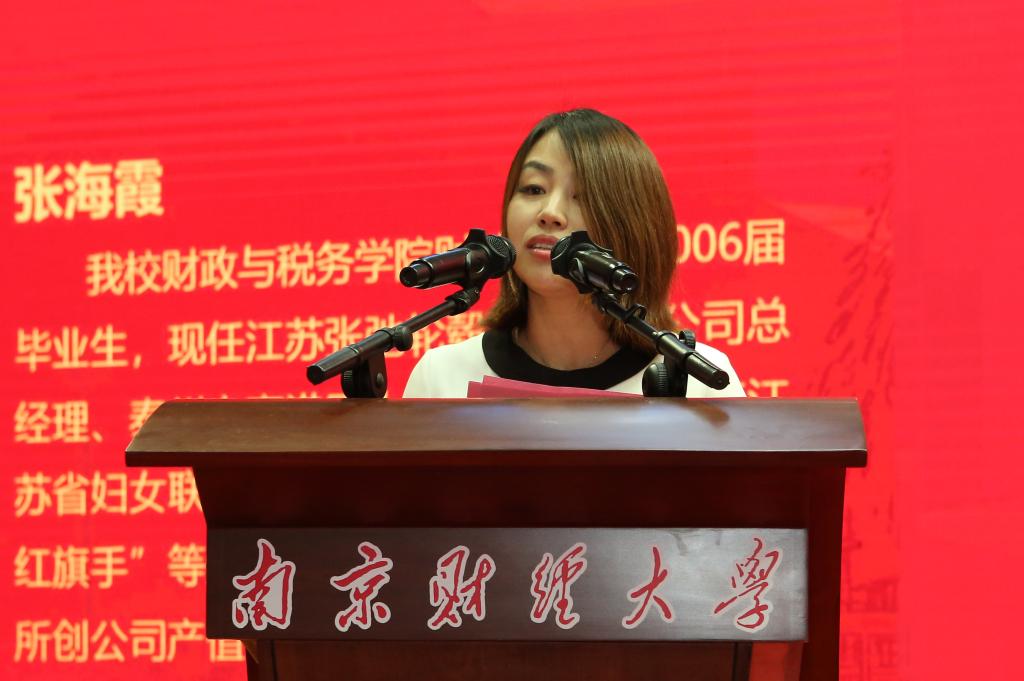 校友代表、财政学专业2006届毕业生张海霞发言。她通过分享大学时光和创业历程,希望学弟学妹们坚定理想、牢记使命、不懈奋斗,开启新的人生征程!