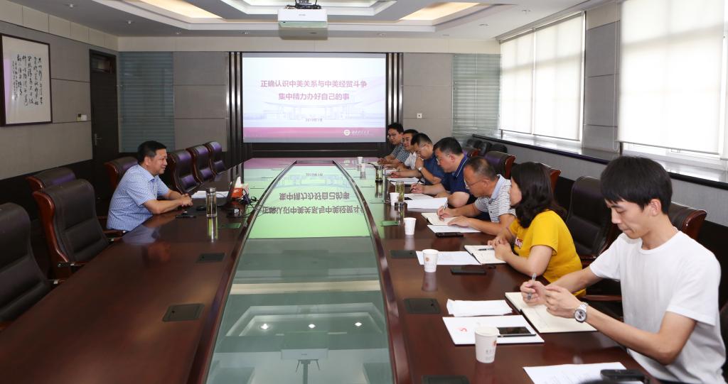 张利民书记在仙林校区行政楼1009会议室为党委办公室、校长办公室党支部讲授了题为《正确认识中美关系与中美经贸斗争,集中精力办好自己的事》的党课。张利民书记传达了习近平总书记关于开放发展理念、经济全球化三阶段以及我国同世界关系三阶段的重要论述精神,并从“国家间竞争”“世界强国发展进程的启示”“中美关系的回眸与思考”“集中精力办好自己的事,积极应对中美经贸斗争”等四个方面分析了经贸斗争的实质,阐明了“合则两利、斗则俱伤,合作比摩擦好,对话比对抗好”的历史必然。张利民书记还从“坚定信心,团结拼搏”“保持定力,埋头苦干”“勇于担当、主动作为”“防范风险,维护稳定”等四个方面谈了应对中美贸易摩擦的相关举措给予学校未来改革发展的重大启示。张利民书记强调,要坚决贯彻落实以习近平同志为核心的党中央决策部署,统一思想、坚定信心,集中精力办好自己的事,坚定不移为实现“两个一百年”奋斗目标而努力。