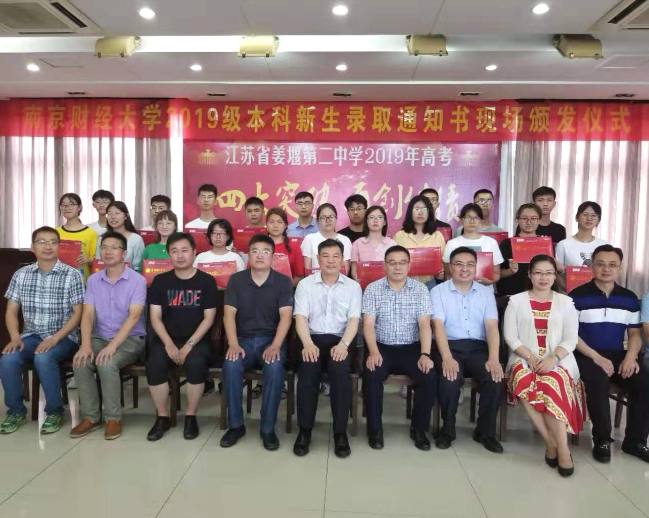 7月19日-20日,校长程永波赴盐城第一中学和江都中学分别为考取伟德官网的33名和18名学生颁发录取通知书。盐城市教育局副局长丁才林、盐城市第一中学校长王乃宁,江都区教育局长兼江都中学校长周明龙、江都中学党委书记李维奇等出席颁发仪式。仪式现场,程永波校长向两所中学和考取伟德官网的2019级新生表示祝贺,对当地教育局和两所中学长期以来支持和关心南财大各项事业发展表示衷心感谢。程永波校长详细介绍了学校的办学历史、办学规模、专业设置和就业前景等相关情况。程永波校长指出,得天下英才而育之,是教育工作者最大的乐事,希望各位新生同学们在未来的大学生活中,勤于“博学”,勇于“审问”,长于“慎思”,善于“明辨”,乐于“笃行”,学好知识,学成本领,回报母校,回报社会,成为学校特色鲜明高水平财经大学建设的见证者和参与者,成为领跑新时代潮流的奋斗者。最后,程永波校长强调学校未来将继续坚持“以生为本”的育人宗旨,深入探索“大类招生、大类培养”育人模式,积极践行“三全育人”育人理念,为全面提升人才培养质量,不断书写顶层设计“好文章”。