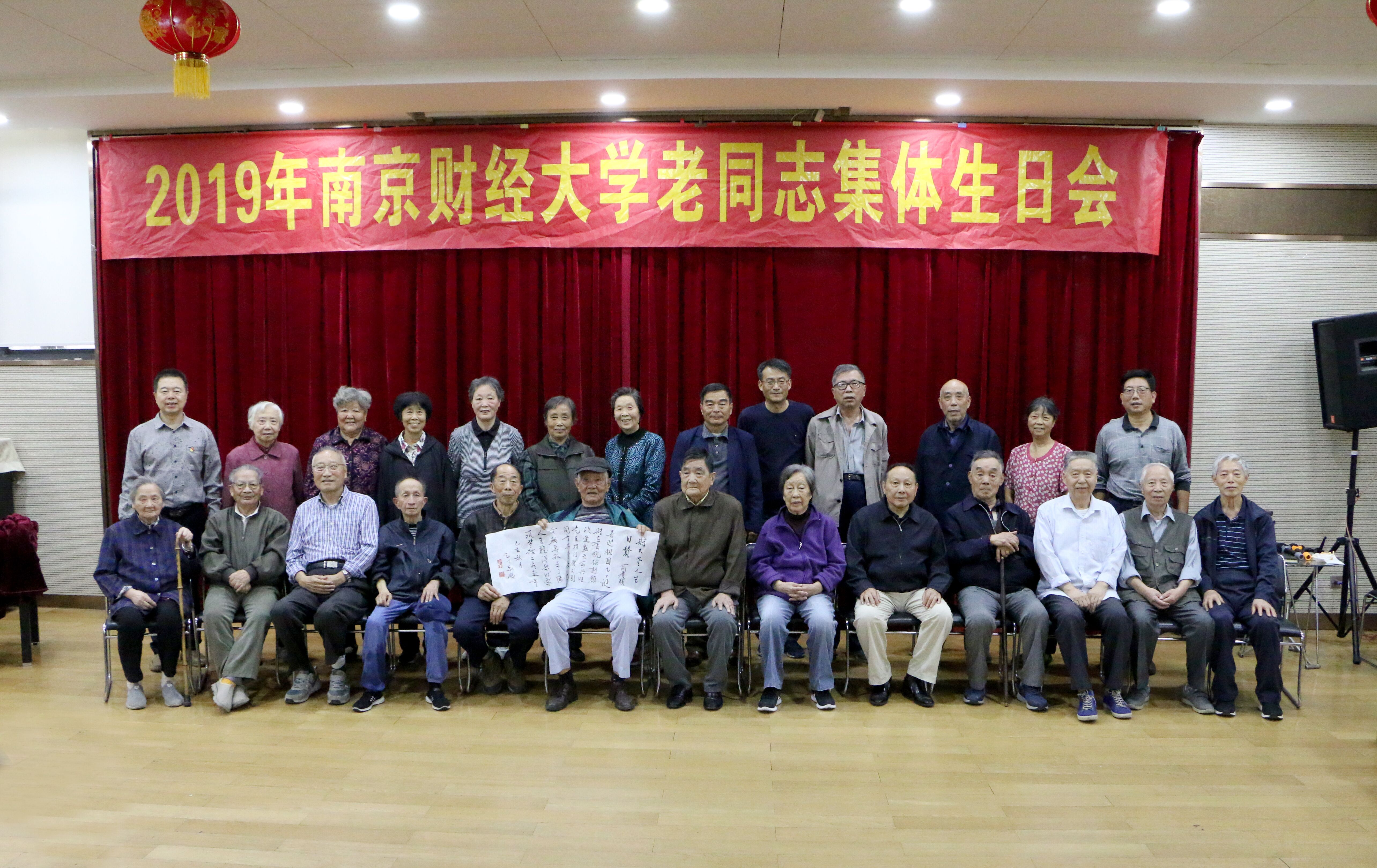 伴随着欢快的生日快乐歌,李群副校长等为老同志发放生日礼金并与大家合影留念,现场充满喜庆的氛围。