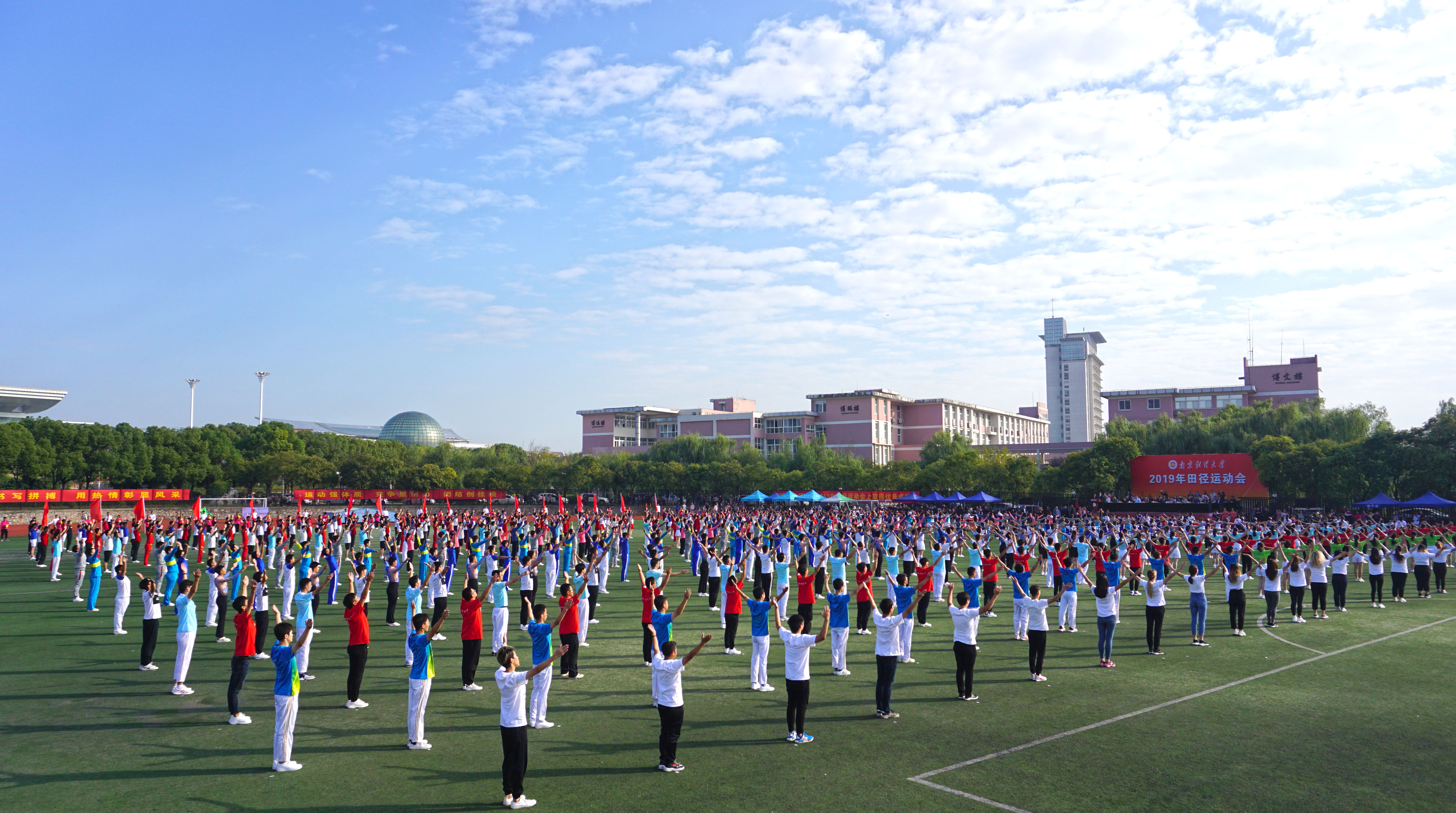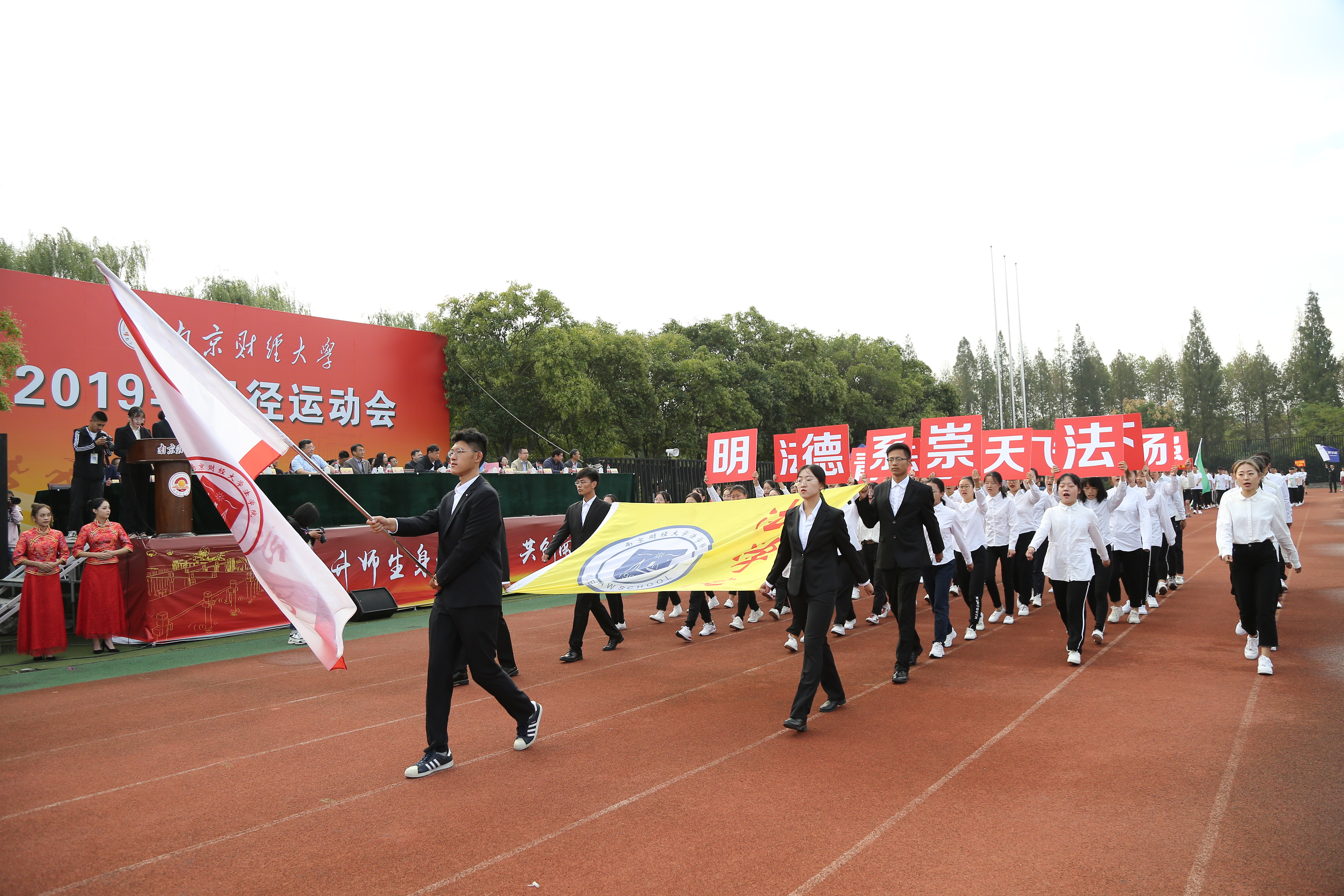 拼搏向上,斗志激昂,运动场上切磋较量;青春无畏,英姿勃发,飒爽金秋登天揽月。10月17日上午,伟德官网2019年田径运动会在仙林校区西苑田径场开幕。校党委副书记温潘亚,副校长时现、李群,校党委常委、宣传部部长石奇出席开幕式,各职能部门、各学院负责人与全体运动员一同参加了开幕式。开幕式由副校长李群主持。
