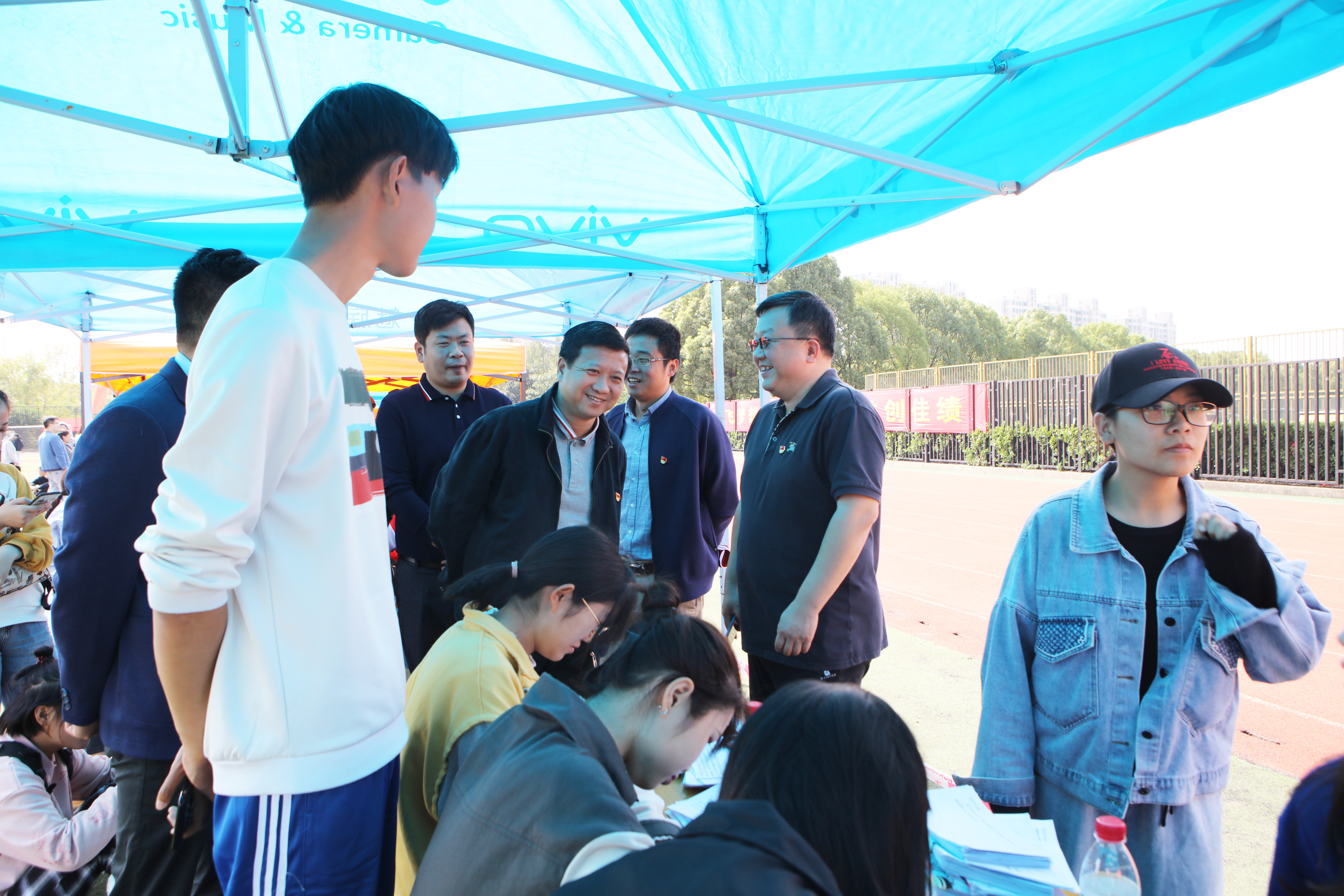 比赛过程中,校党委书记张利民来到田径场、体育馆看望慰问参赛运动员及现场工作人员,并饶有兴致地参与体验了“托球跑”等比赛项目。