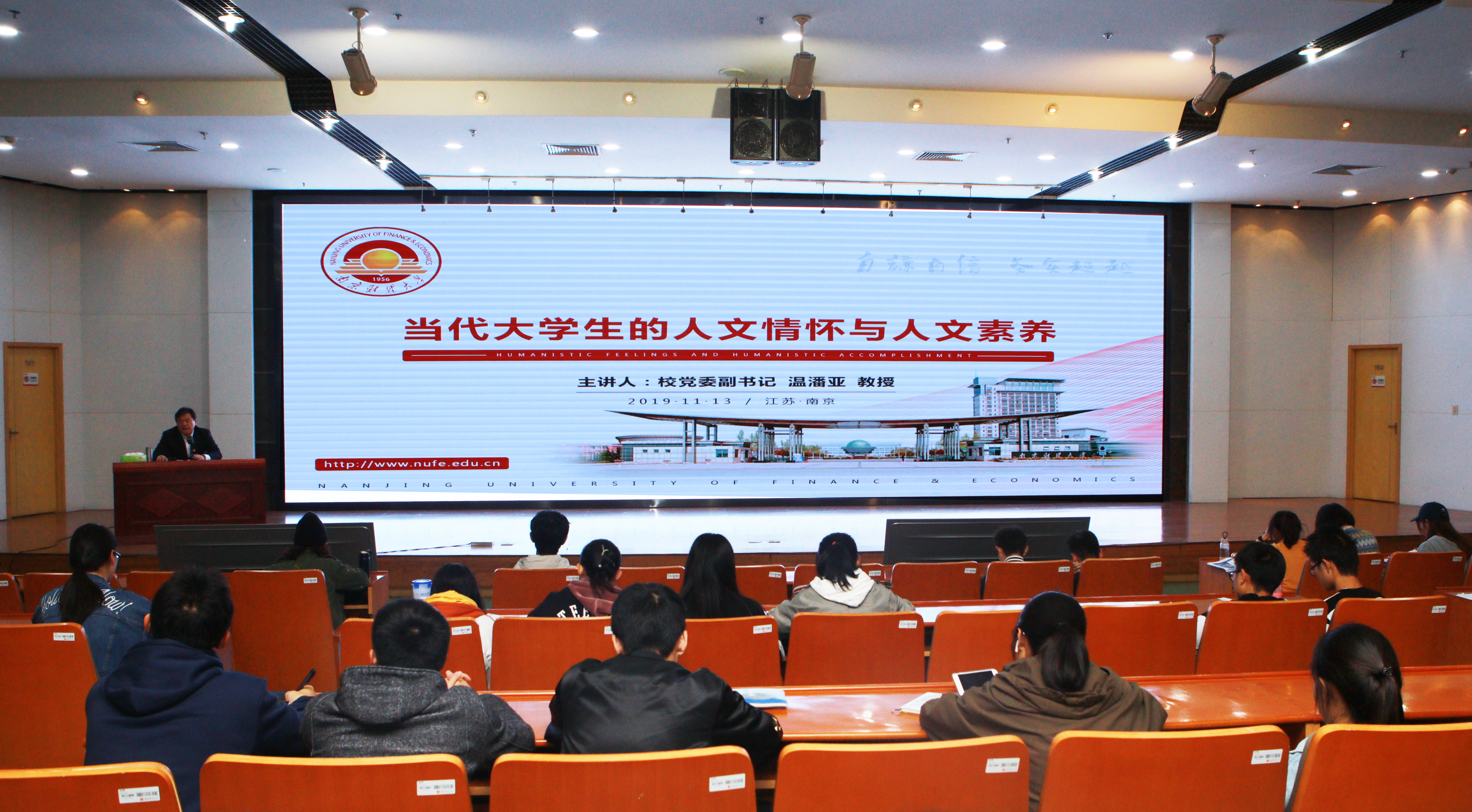 11月13日晚,校党委副书记温潘亚教授在仙林校区图书馆报告厅为2019级新生讲授了题为“当代大学生的人文情怀与人文素养”的公开课。