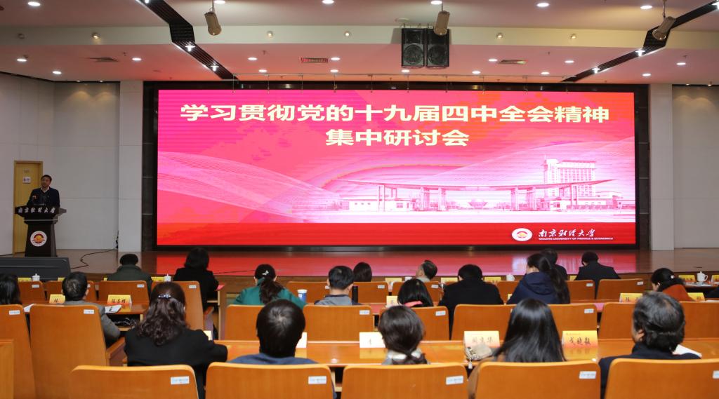 11月25日下午,伟德官网在仙林校区图书馆报告厅召开学习贯彻党的十九届四中全会精神集中研讨会。会议的主要任务是,结合“不忘初心、牢记使命”主题教育,深入学习贯彻党的十九届四中全会精神,动员全校各级党组织和广大党员干部师生把思想和行动统一到全会精神上来,扎实推进学校治理体系和治理能力现代化,更好地保障和推动学校高质量发展。全体校领导出席会议,全体党委委员、纪委委员,全体中层领导干部,全体基层党支部书记,党外人士代表参加会议。会议由校党委书记张利民主持。
