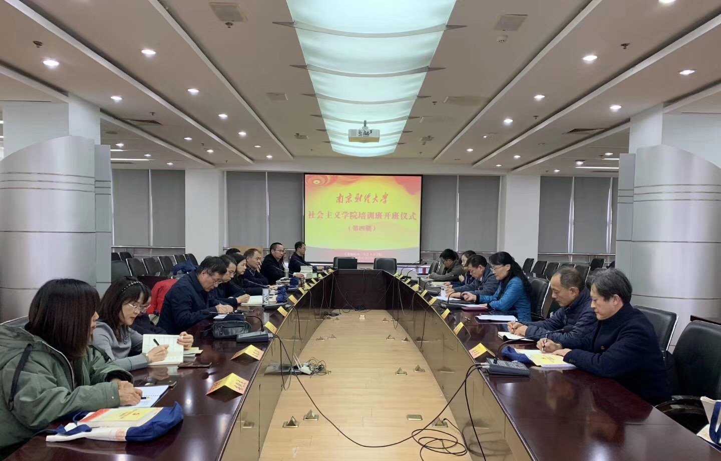 11月29日下午,社会主义学院第四期培训班开班仪式在仙林校区行政楼16楼会议室举行,校党委副书记、社会主义学院院长温潘亚出席开班仪式,培训班全体学员及统战部全体工作人员参加。开班仪式由党委常委、统战部部长、社会主义学院常务副院长吕戎主持。