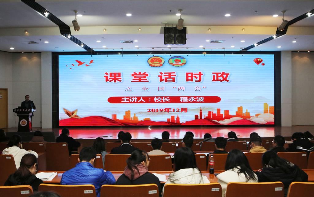 课上,程永波校长还分享了作为十三届全国政协委员参加两会的总体感受,即党的领导是根本、求真务实重质量、立足人民谋发展、成就显著鼓士气,并表示深刻感受到全国两会求真务实、催人奋进,深受鼓舞,更觉责任重大、使命光荣。他说,过去一年国家取得的成就来之不易,其根本在于以习近平同志为核心的党中央的坚强领导,在于习近平新时代中国特色社会主义思想的科学指引,充分彰显了习近平总书记作为党中央的核心、全党的核心的卓越政治智慧、强烈使命担当、顽强斗争精神和真挚为民情怀。为切实提高会议质量,贴近现实生活,交流坦诚务实,这次两会采取了一系列有力举措,比如举行了多场“部长通道”“代表通道”和 “委员通道”采访,政协开通移动履职APP,议案、提案不追“数值”重“言值”,建立委员履职档案,建立委员分批次列席常委会会议等制度机制,着力推动全体委员做好“年度作业”,委员履职的深度广度明显提升。政府工作报告提出的暖心政策、为民举措很多,其中最让人温暖和感动的是重点关注了各类特殊群体,最具体和生动的是围绕民生热点做的“四个减”和“三个增”,即“减”税降费降成本、“减”政激发新活力、“减”出百姓新实惠、“减”排放促环保、“增”出市场活力、“增”出产业质量、“增”出民生温度。程永波校长从三个方面谈了自己的感受,即从骄人数据看“中国成就”、从改革魄力看“中国决心”、从世界关注看“中国影响”。