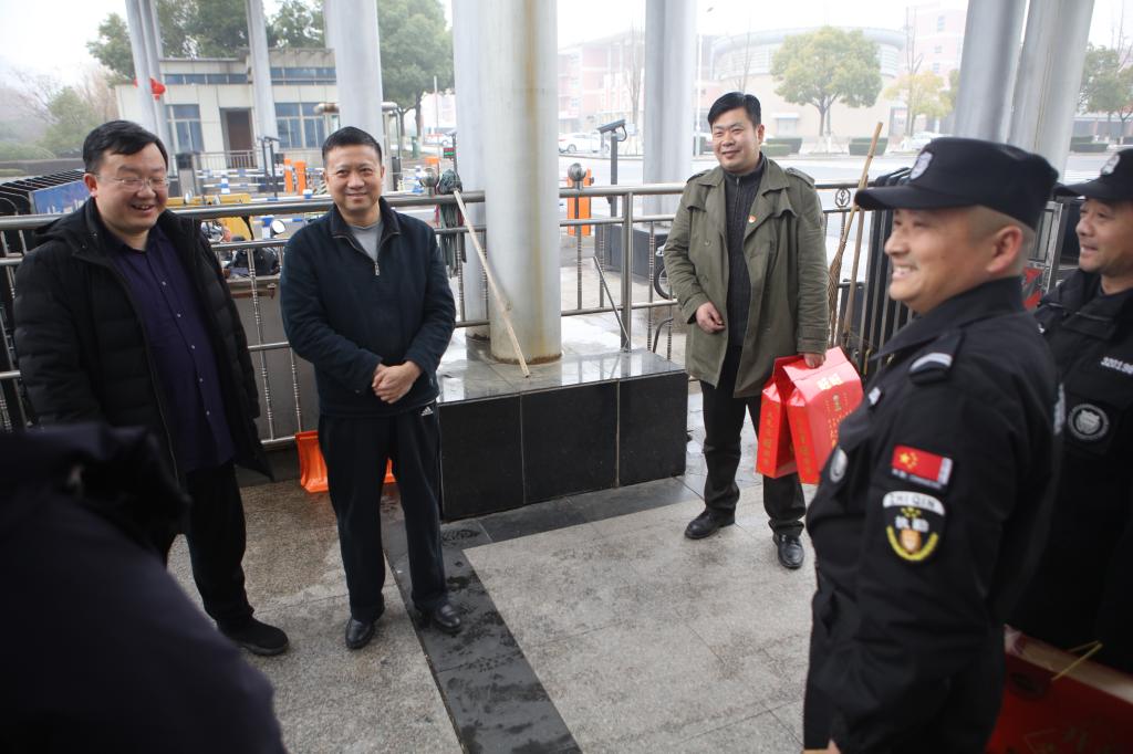 张利民书记一行检查了学校配电房、办公楼、教学楼、施工现场、门卫值班监控室等场所的安全保卫和值班情况,看望慰问假期仍工作在一线的保卫、值班和工作人员。在看望慰问中,张利民书记与保卫、值班和工作人员一一握手,热情交谈,了解工作情况,向他们送上慰问品,并感谢他们在新春佳节期间仍坚守岗位,为保障学校各项工作正常有序作出的贡献。大家由衷感谢校党委和行政的关心慰问,纷纷表示一定会恪尽职守,认真做好寒假、春节期间的各项安全保卫和服务保障工作。