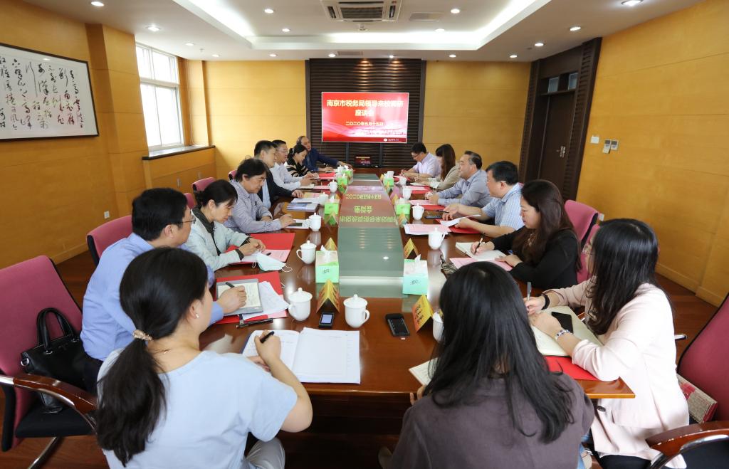南京市税务局相关处室负责人、栖霞区税务局领导,伟德官网党校办、教务处、科研处、财务处、财政与税务学院相关负责人参加交流座谈会。