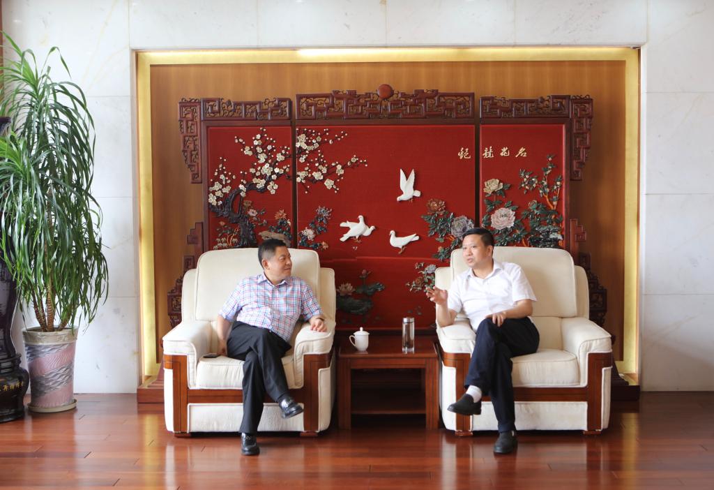 7月7日下午,上海中盛实业集团董事长郑传江、董事长秘书周杰一行来访伟德官网。校党委书记张利民在仙林校区行政楼贵宾室会见了郑传江董事长一行,并就深入推动校企合作事宜进行了洽谈。