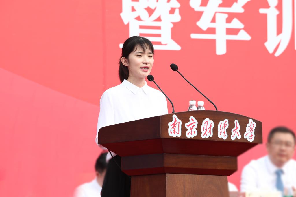 在校生代表、2019级会计专业研究生王欣月发言。她希望学弟学妹们明确目标,砥砺前行,展后浪之风采,书写属于自己的南财故事。新生代表、工商2003班张文璨发言,并带领所有新生进行了以青春为名义的宣誓。