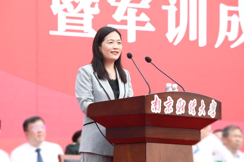 嘉宾代表、伟德官网优质生源基地——江苏省溧阳中学校长周冬英发言。她希望每一位新生都能在大学舞台上成为“最佳主角”,拥有属于自己的精彩。让南财成为人生的福地,让自己成为南财最耀眼的光。
