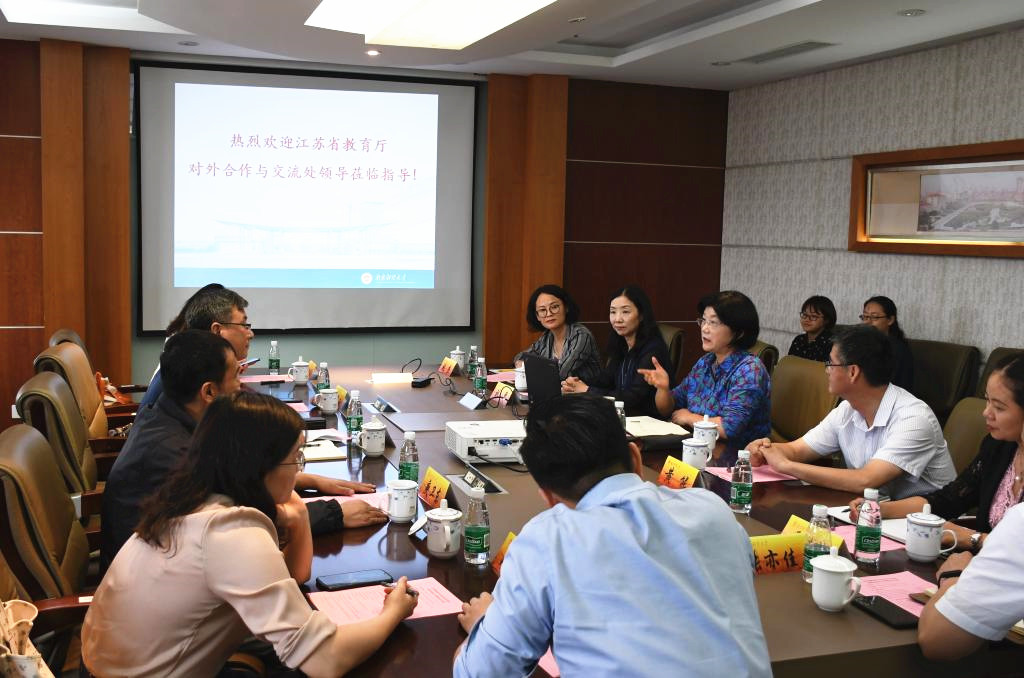 9月29日下午,江苏省教育厅对外合作与交流处处长贺兴初带领全处6名同志到伟德官网参加“十四五”国际合作与交流专项工作座谈会。校党委常委、副校长邱伟芬在仙林校区行政楼1409会议室会见了贺兴初处长一行。国际合作与交流处和国际教育学院所有人员参加座谈会。