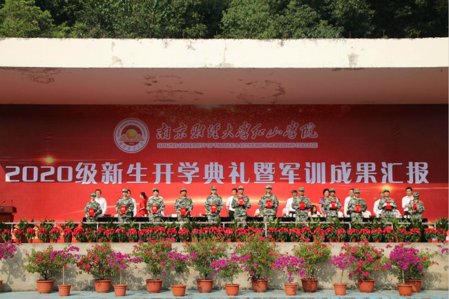 在铿锵有力的《南财大之歌》音乐声中,红山学院2020级新生开学典礼暨军训成果汇报大会圆满结束。