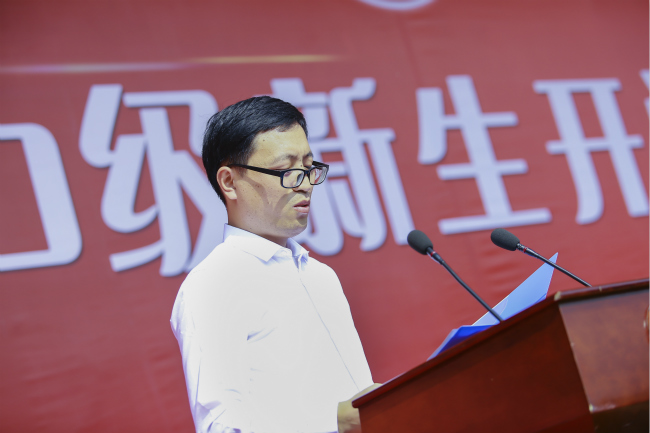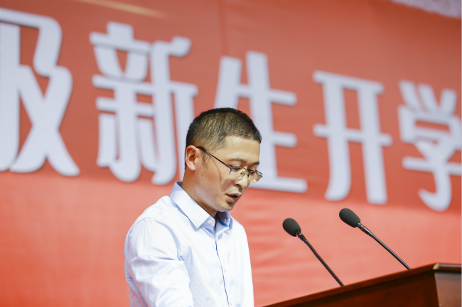 教师代表古贞发言。他希望新同学勇于承担责任,积极规划未来,学会独立思考,主动提升能力,将自己的个人奋斗融入伟大复兴中国梦的宏伟实践之中。在校生代表、学生会主席王钰涵同学及新生代表饶一名同学先后发言。