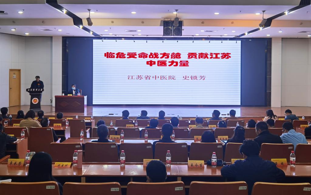 史锁芳教授作了题为“临危受命战方舱,贡献江苏中医力量”的报告。史锁芳教授用质朴的语言、生动的事例,从使命与担当、角色与任务、牢记使命,时刻不忘为江苏争光、为中医争光、江苏中医方案等方面,讲述了“国家中医医疗队——江苏队”全体医护人员临危受命、戮力同心、不畏艰险,投身抗疫一线的感人故事,介绍了中医在此次新冠肺炎疫情防治中发挥的显著作用和独特优势,表达了对武汉速度、中国速度,以及在这场抗击疫情斗争中所彰显的中国特色社会主义制度优势的感佩之情。