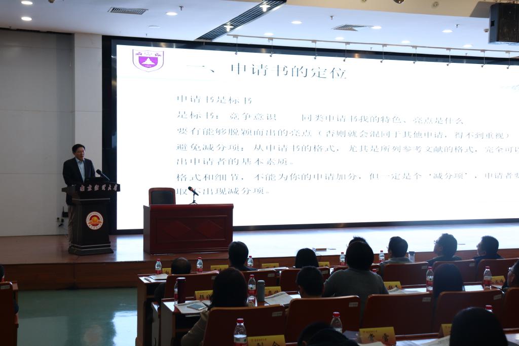 知名经济学家、南京大学教授范从来就国家基金项目申报作了有针对性指导。他表示,选题要注重问题导向,与《课题指南》紧密结合,扬长避短,充分发挥自身的研究优势。同时,结合自己成功立项的案例,范教授对申报书的撰写作了具有建设性的指导。
