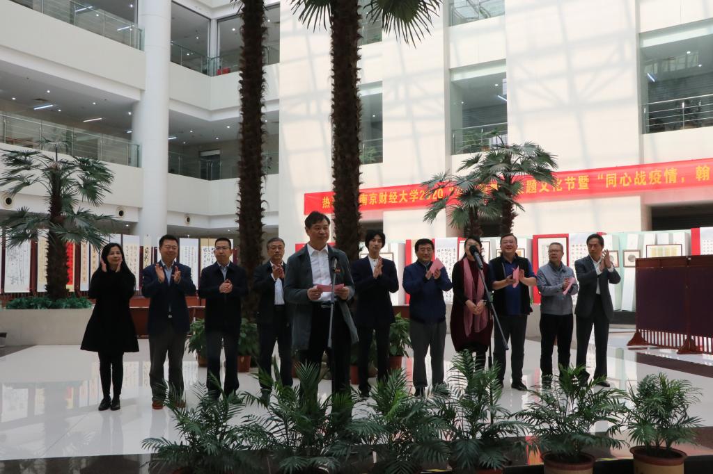 11月2日,“同心战疫情•翰墨颂祖国”教职工书画展开幕。本次书画展由党委宣传部、党委统战部、校纪委、校工会、离退休工作处、图书馆共同主办,艺术设计学院、校教职工书画摄影协会承办。党委副书记(正校级)温潘亚,党委常委、纪委书记李茜,党委常委、副校长乔均,党委常委、统战部部长吕戎,党委常委、宣传部部长石奇,江苏省高校教职工书画协会会长、南京理工大学艺术与文化教育中心主任王卫平出席开幕式,党校办、校工会、离退休工作处、艺术设计学院和图书馆等相关单位负责人参加开幕式。仪式由乔均副校长主持。