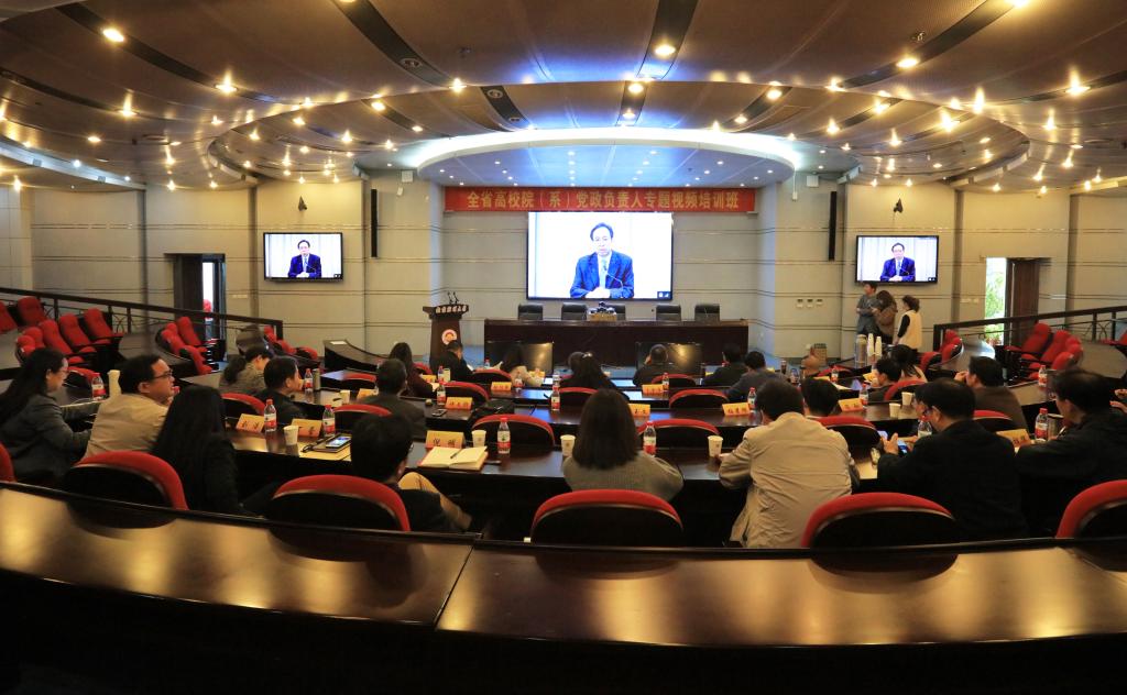 为深入学习贯彻习近平新时代中国特色社会主义思想和党的十九大精神,扎实推进学院党建工作质量提升,根据省委教育工委关于举办全省高校院(系)党政负责人专题视频培训班的要求,11月10日,伟德官网在仙林校区行政楼二楼报告厅设分会场组织收看专题视频培训。全体学院党政负责人参加培训。