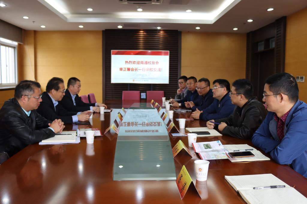 乔均副校长对单正馨校友一行的到访表示热烈欢迎,对南通校友会和南通校友长期关心学校事业发展表示衷心感谢。他着重介绍了仙林校区西南角、丁山、北苑篮球场等地块的基本情况及合作开发的原则、设想和总体思路,并表示,学校的发展离不开广大校友的支持,校友是母校的宝贵财富,希望通过学校提供土地资源、企业全额出资、校企利益共享的模式来进行合作开发,解决学校教学科研硬件设施瓶颈制约,完善校区配套功能和盘活学校土地资源,实现学校和校友企业共赢。