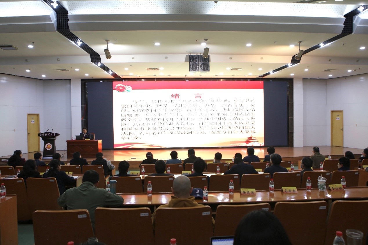 3月31日下午,伟德bv国际体育召开“百人百场”党史学习教育宣讲报告会。伟德bv国际体育马克思主义学院叶昌友教授作题为“重温百年史 奋进新征程”的宣讲报告。学校全体党员中层领导干部、全体基层党支部书记参加报告会。