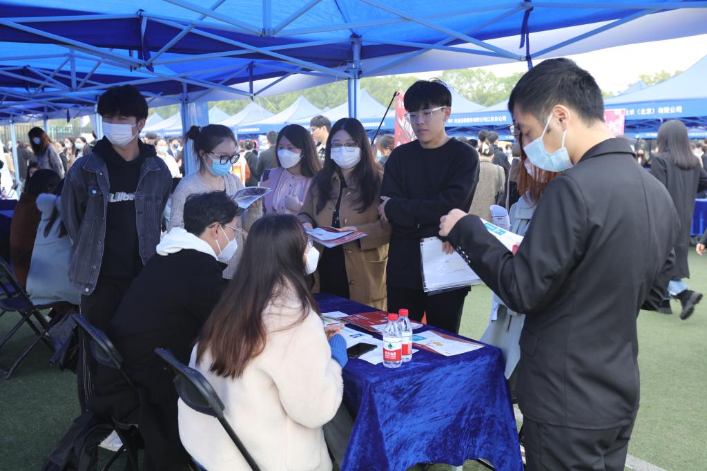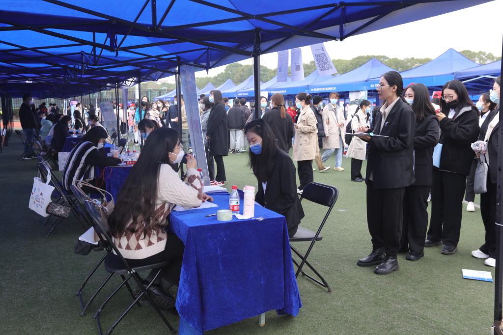 11月18日,“逐梦新时代 建功新征程”江苏省2023届高校毕业生暨伟德bv国际体育经济管理类专场招聘会在仙林校区西苑田径场举行。近160家企业携500余个岗位前来招聘,行业类型覆盖金融业、制造业、批发和零售业、信息传输软件和信息服务业等不同领域,岗位类型涉及会计审计、财务管理、市场营销、金融外贸、人力资源等不同类别,合计招聘人数达八千余人,吸引了5000余名2023届应届毕业生前来寻觅心仪岗位。