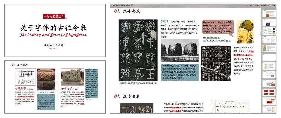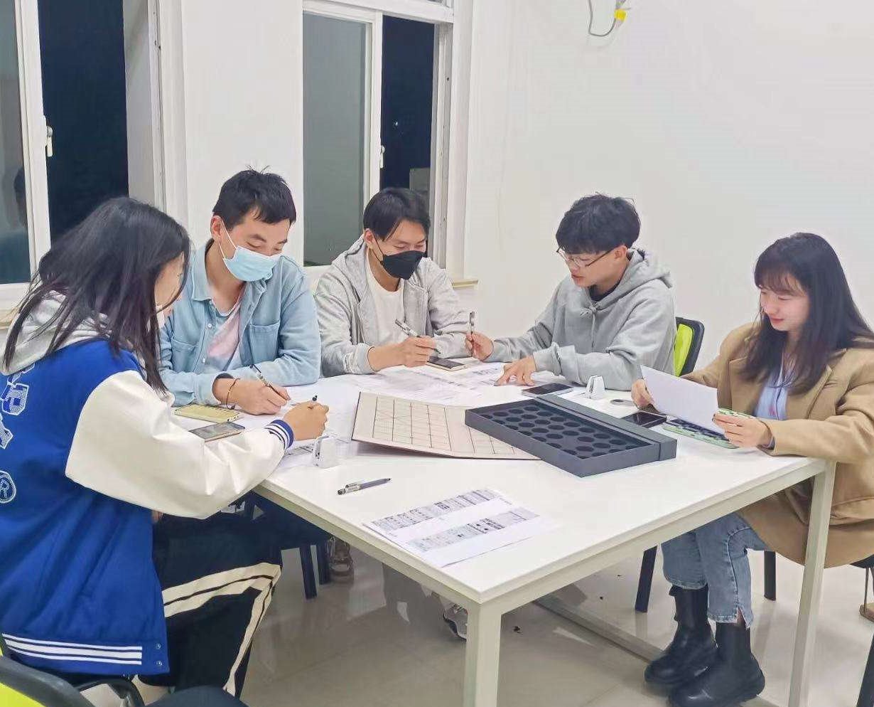 工作室除了做设计,还会定期拟定课题、分配研究。例如中国汉字史、网格版式系统、包装物料历史的研究……课题发布后,同学们会在一个月后形成报告,进行汇演讲解。“这也是我们工作室成立的目标之一,最大效率地学习知识,让大家在学中教、教中学。”团队成员、视觉传达设计专业肖蕾同学表示。