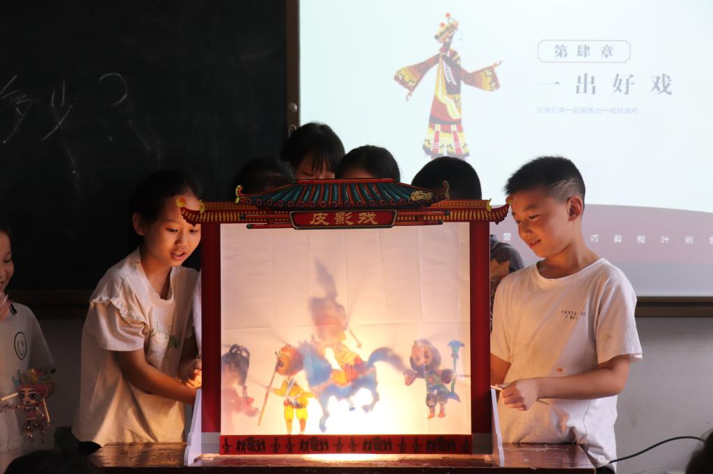 “大风吹,吹什么?”一场场破冰游戏拉近了支教小老师和孩子们的距离,让他们建立起了真挚而深厚的感情。在陕西省安康市紫阳县瓦庙镇中心学校,支教队队员们深入了解当地的地域特色和非遗传统后,选择将陕西非遗皮影戏、地方美食、篆刻课程、美术心理疗愈融入课堂,为孩子们搭建起了解民俗文化多样性的平台。