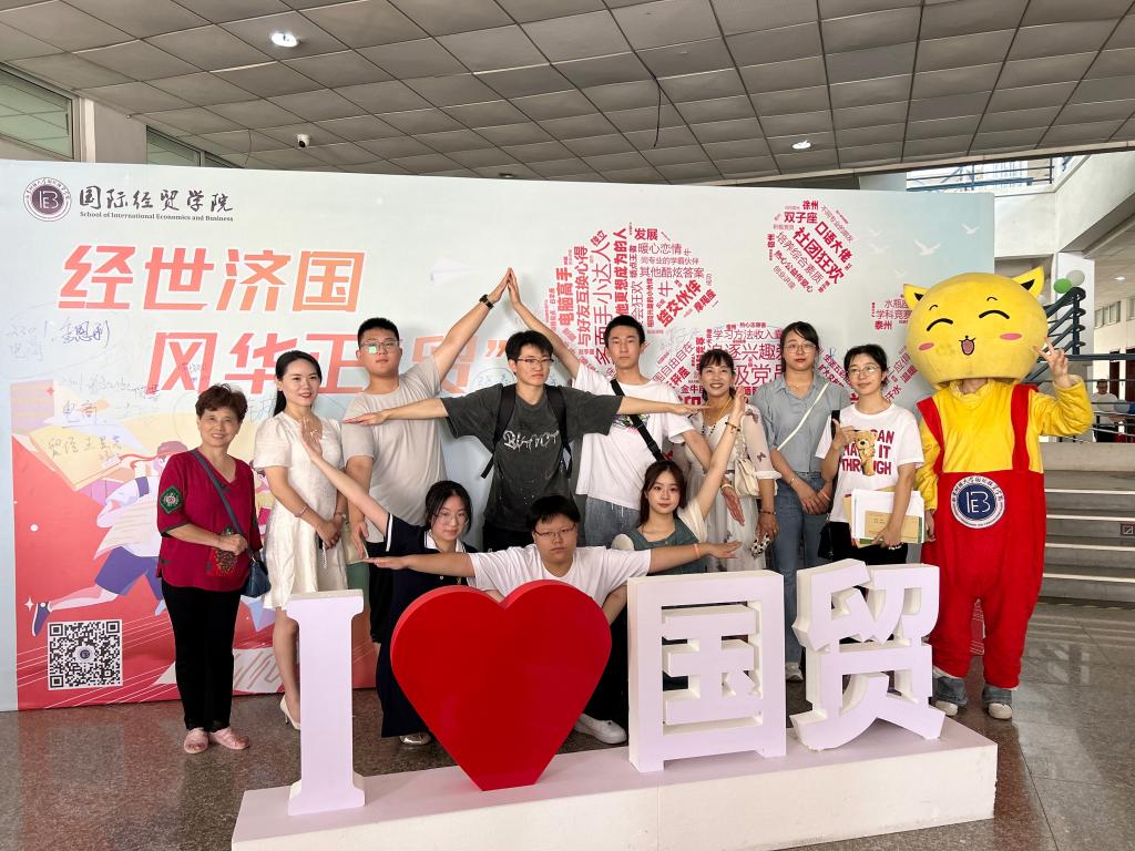 早在开学报到前三天,国际经贸学院便向新生发送了一份“未来么”订单,300多位新生怀揣着对大学的期待和憧憬写下了属于自己的关键词。学院根据词频将其绘制成“星球”词云图,展示在德经楼一楼大厅“经世济国,风华正‘贸’”打卡墙上。前来报到的新同学纷纷被其吸引,驻足观看。在“学业”星球上,有的同学想成为“专业大咖”,有的想成为“绩点王者”,也有的想成为“科研大佬”;在“技能”星球上,“口语达人”和“电脑高手”则成为大多新生的目标;在“生活”星球上,“扩大社交范围”“认识更多志同道合的朋友”成为大多数同学的选择……同学们还用“牛”“独立”“乐观”“温暖”“自律”“非凡”“为国”“闪闪发光”等正能量词语描绘想要成为的自己。贸经2301班梁星月同学说:“非常喜欢学院为我们准备的‘见面礼’,星球展板上的关键词让我对大学生活充满期待!”展板旁的游戏区也十分热闹。“同学快来!一起做任务!赢礼物!”学院精心设计了协同游戏,引导新生们共同按要求摆出打卡姿势,他们或相互支撑做出“花开”的形状;或手拉手组成“八芒星”的图案;或展开双臂,拥抱新征程……有趣的游戏环节瞬间拉近了同学间的关系,欢声笑语弥漫着整个大厅。