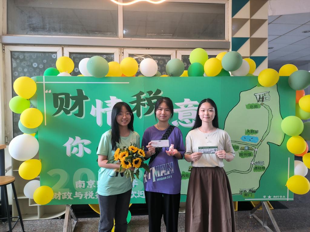 财政与税务学院以“NUFE Walk”为主题,将时下流行的“City Walk”元素融入打卡盖章为新生们设计了别具特色的迎新活动。新生报到时可领取一张“飞机票”,按照票面上的“NUFE Walk”路线,前往教学楼、餐厅、图书馆、宿管站4地,快速了解、适应大学生活。在“飞机票”的反面,“绷紧防范之弦,远离诈骗之害”的标语十分醒目,反诈宣传的“开学第一课”就此开启,新生通过回答财税、反诈知识相关问题,获得“财”“情”“税”“意”四字印章。“转账不可轻信”“税收强制性”“起征点是需要的”……财税的“小萌新”们围站在打卡点前,热火朝天地讨论着每个问题。此外,学长学姐们还别出心裁地设计了“财小税”周边文创送给新生。凭借收集的打卡点印章,可兑换“财小税”兔兔组合的贴纸、包以及文件夹等原创周边。打卡完成后,新生们回到大厅,与老师们共同种下了录取通知书里的向日葵种子,也种下了对自己大学生活的美好期许。