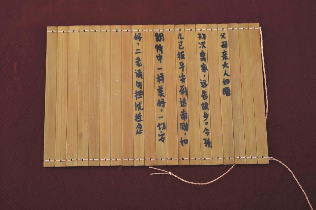 营销与物流管理学院精心设计了“竹报平安”活动,为独自前来报到的新生提供精美的竹简和锦袋,让他们在竹简上写一卷“家书”,拍照传送家长,分享入学的喜悦,报一声平安。“父母亲大人如晤:初次离家,远告故乡。今孩儿已平安到达南财,如期待中一样美好,一切安好,二老请勿担忧挂念。”广告2302班哈斯叶提·居曼同学小心翼翼地将家书装入锦袋,并表示一定珍藏好这一份温暖与美好。