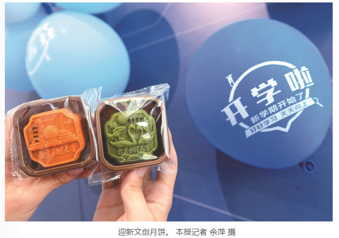 “星云”词云展板、非遗投壶游戏、竹简家书……9月3日,在南财迎新现场,各学院准备了不少惊喜。在伟德bv国际体育艺术设计学院迎新现场,“送你一盒南财的月光”月饼吸引了“萌新”们的驻足。原来,早在暑假期间,学长学姐们组成的月饼文创团队就开始设计了,他们将南财特色建筑与广式月饼相结合进行设计,自主联系食品加工厂,全程监控食材的选择和加工的细节。“马上就到中秋节了,希望第一次离家的同学们在开学第一天就能在南财感受到家一样的温暖,也希望他们能因此开启‘圆满’的大学生活。”南财艺术设计学院党委副书记张荣霞表示。