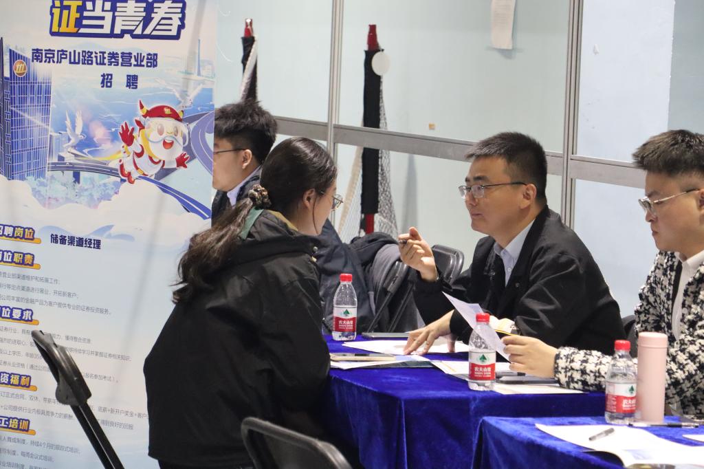 本次招聘会现场还设置了二级学院“访企拓岗”单位招聘专区,包括扬子江药业集团、中兴华会计师事务所、大众书局、雨润控股、恒丰银行等71家“访企拓岗”单位到场招聘。其中,江苏证券行业协会组织协会会员单位华泰证券等23家证券企业到场组团招聘。安徽省六安市裕安区委组织部带领9家安徽六安企业来校招聘,吸引了安徽籍毕业生的关注。南京市人社职培中心组织了14家用人单位开展“青春启航 逐梦江苏”2023年度江苏省高校毕业生就业服务省内巡回招聘暨就业见习专场活动,为毕业生提供就业见习岗位。栖霞区人社局为毕业生带来了就业政策咨询服务;校学生处就业创业指导中心组织辅导员和职业规划课程教师为毕业生现场进行简历优化和面试指导咨询;校武装部组织了征兵政策咨询;校团委为毕业生提供了西部计划和乡村振兴计划政策咨询。