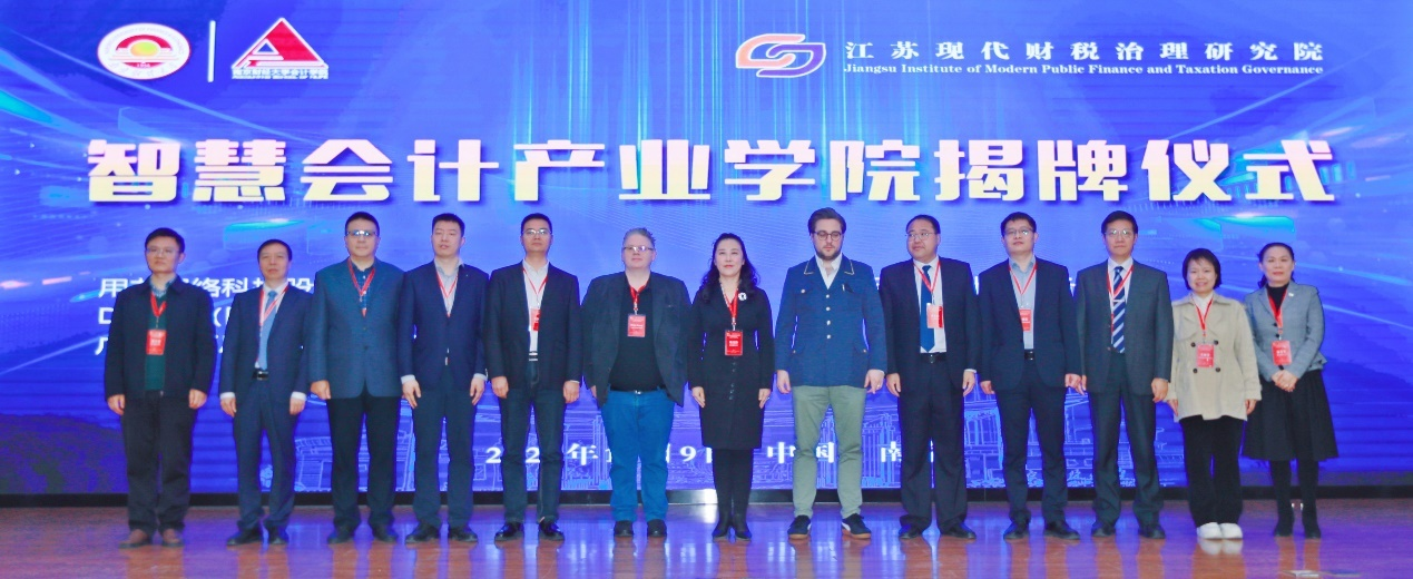 随后,来自用友网络科技公司、DAMA中国、天衡会计师事务所、福思特科技有限公司、爱尔兰都柏林圣三一大学、意大利路易斯商学院等单位的专家们跨界协同,为伟德bv国际体育智慧会计产业学院举行了揭牌仪式。
