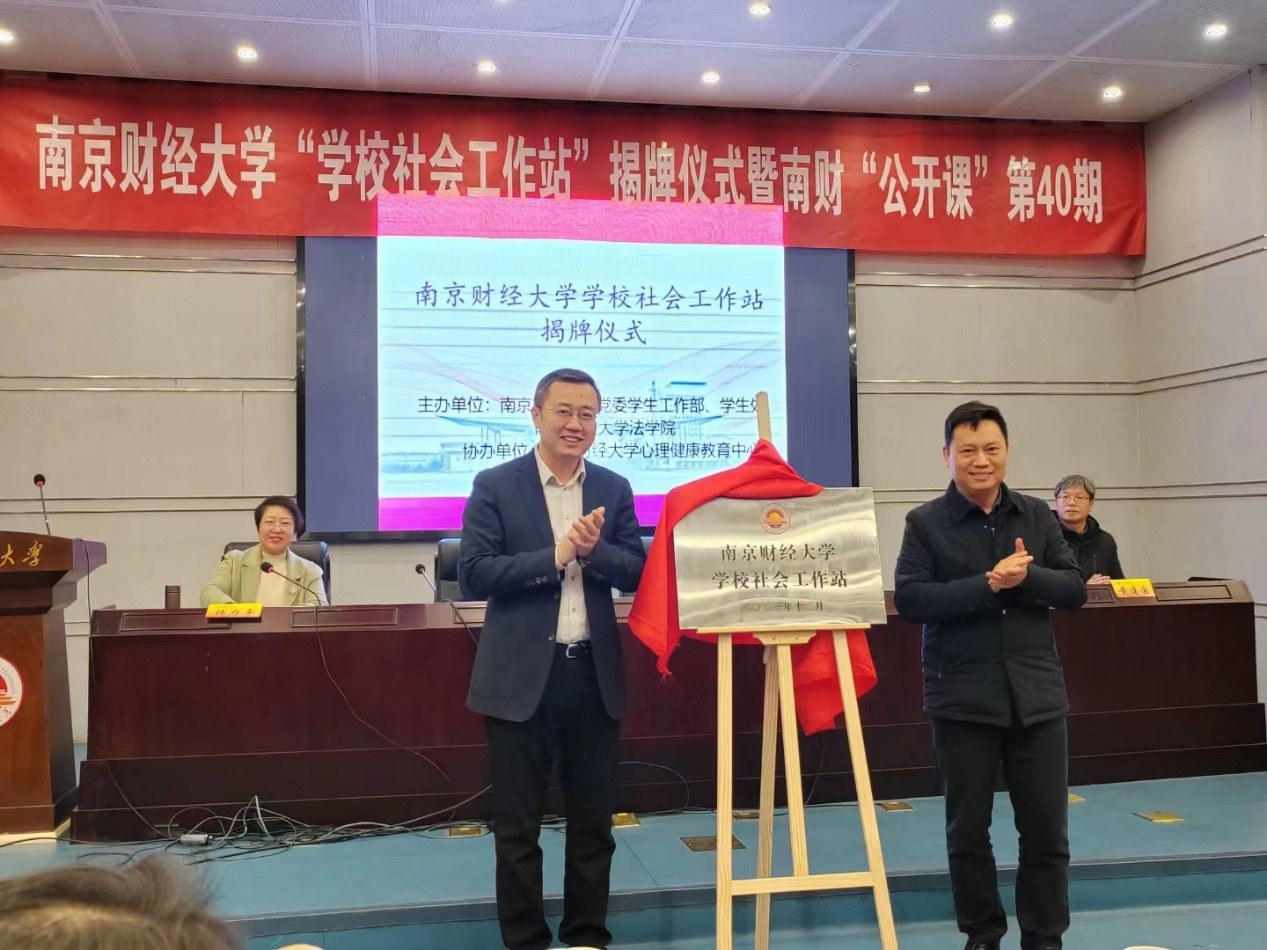 近日,伟德bv国际体育举行“学校社会工作站”揭牌仪式。伟德bv国际体育党委常委、副校长赵国栋和江苏省社会工作协会副会长李居河共同为“学校社会工作站”揭牌。