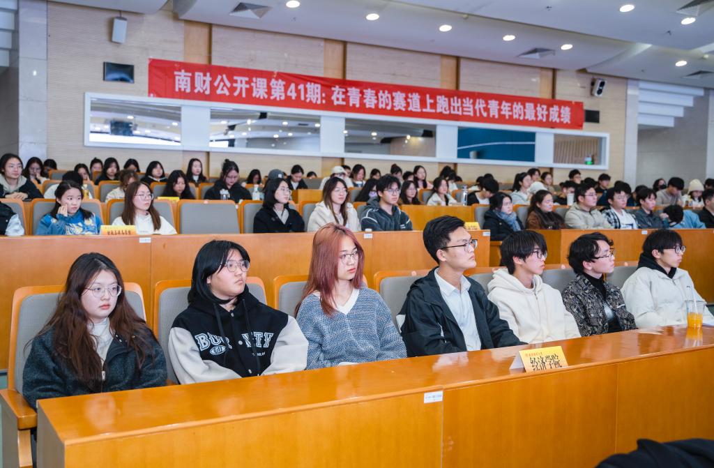 在第四十一期“南财公开课”上,曲建武为学校师生作“在青春的赛道上跑出当代青年的最好成绩”主题报告。嘱咐当代青年以爱国爱党爱校为立身之本,以坚定理想信念引领人生方向,以锤炼过硬本领奠定事业基础,以明是非守法律守牢处世底线。营销与物流管理学院营销2301班团支书劳文洁同学听完报告后感触颇深:“曲老师的人格魅力和精神力量令人感动、振奋人心、发人深省,坚定了自己毕业后扎根南疆的理想信念。未来,一方面勤学苦练,在实践中增长才干,将个人追求的实现融入民族团结的伟大事业中;另一方面潜心服务同学,发挥好学校与学生之间的纽带作用,以自身为源燃起青年学生的理想之灯。”