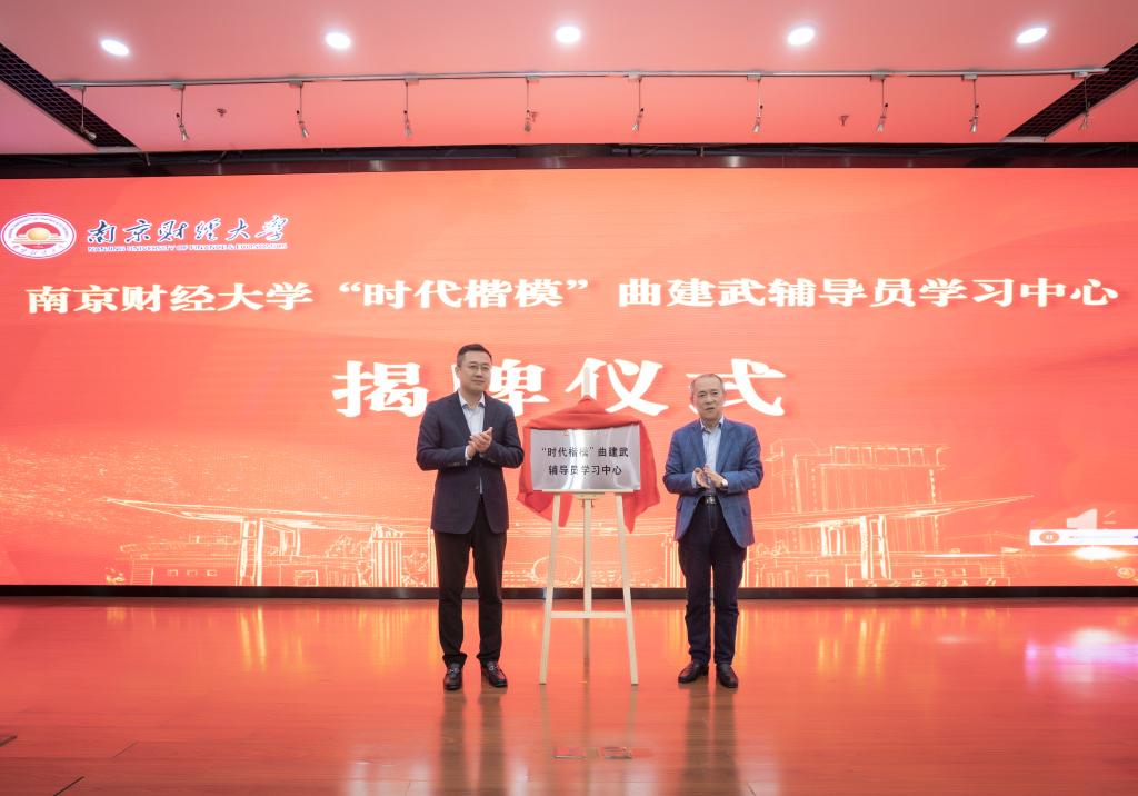 期间,南财大副校长赵国栋和曲建武教授共同为伟德bv国际体育“时代楷模”曲建武辅导员学习中心揭牌。南财大学生处处长韩力争介绍说,中心将以培养优秀辅导员为核心任务,致力于为全校辅导员提供学习、交流、成长、提高的平台,推动广大师生学习曲建武先进事迹、热爱教育和服务学生的至诚情怀,探索大学生思想政治教育的新方法、新途径,进一步推进学校辅导员队伍建设和大学生思想政治教育工作再上新台阶。