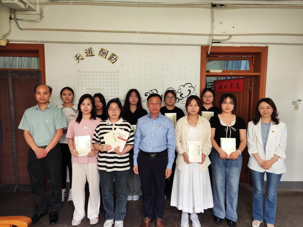 “中国共产党的发展历程就是一部为中华民族伟大复兴而不懈奋斗的历史,大家要坚定正确的政治方向,多读马克思主义经典、悟马克思主义原理,自觉屏蔽不良信息。”党委常委、副校长黄步龙深入中苑10号宿管站,向同学们赠送了《伟大的马克思》和《中国共产党百年发展历程》两本著作,并引导同学们从党史中了解党的廉洁纪律建设之路,深刻认识党纪学习教育的重大意义。
