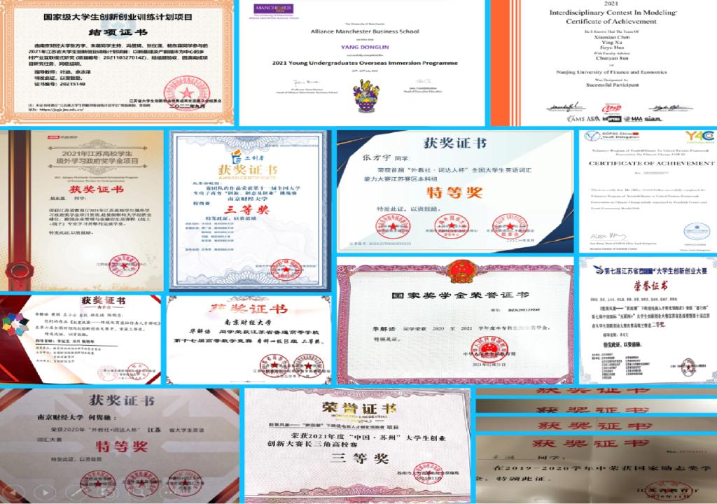 实验班项目化导师制的培养模式在国际经贸学院“以赛促学”的教育理念中得到充分贯彻。共青团中央“三下乡”“返家乡”社会实践优秀调研报告、海峡两岸女大学生创新创业大赛全国金奖、“互联网+”江苏省银奖、“学创杯”江苏省特等奖……在国贸实验班,不少“科研小白”在多导师联合培养下“化茧成蝶”,脱变为叱咤各类学科竞赛的“竞赛达人”,朱奕昊便是其中一位。