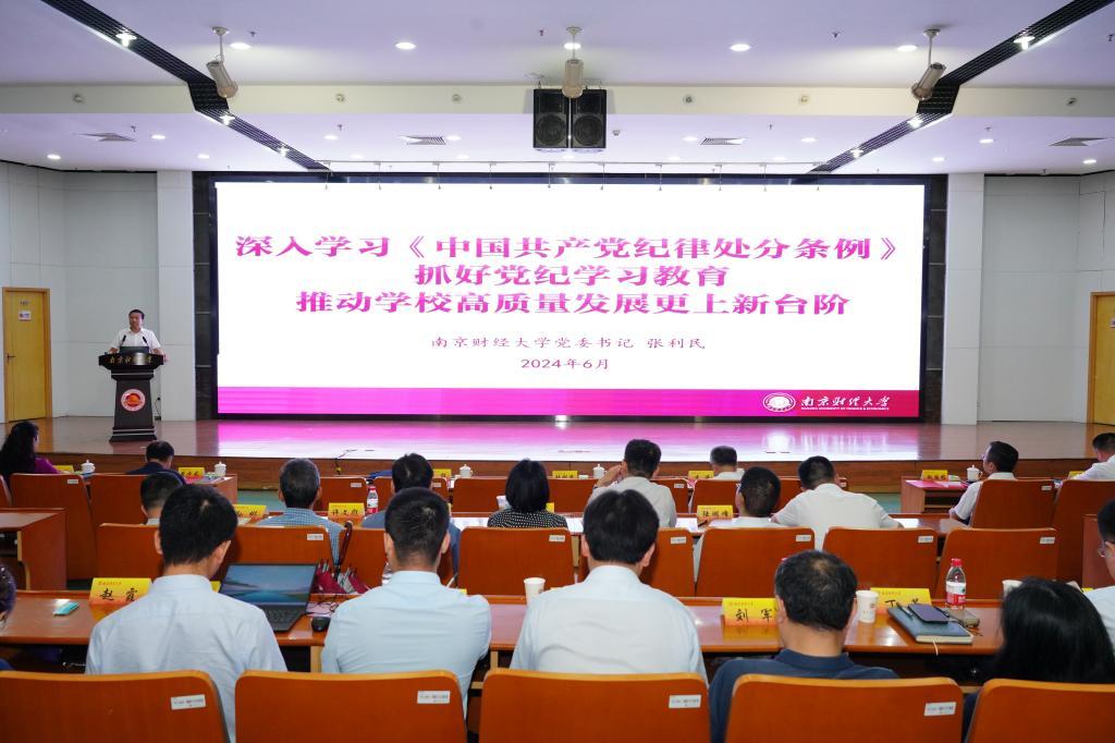 6月28日下午,伟德bv国际体育党委书记张利民在仙林校区图书馆一楼报告厅为师生讲授题为“深入学习《中国共产党纪律处分条例》 抓好党纪学习教育 推动学校高质量发展更上新台阶”的党课。全体校领导,全体党委委员、纪委委员,全体中层干部,基层党支部书记代表,新发展党员代表等参加党课学习。