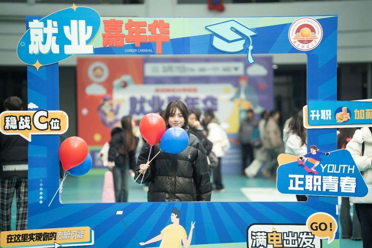 招聘会现场除了设有政策咨询、法律维权咨询服务、应征入伍政策咨询、“西部计划”“乡村振兴计划”咨询等常规咨询台外,学校还创新推出了“就业嘉年华”主题活动,吸引不少学生参与。