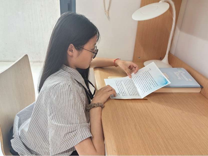 不止于此,学校还为她搭建了一套“全方位守护体系”:辅导员时刻关注她的生活与情绪,学工处老师定期跟进学业进展,小到教学楼无障碍通道的协调,大到未来职业规划的指导,总能在她需要时及时伸出援手。学院更精心设计了“1+N”朋辈帮扶机制——既有高年级本科生党员陪她熟悉校园、分享学习技巧,还特意邀请了本校优秀毕业生、曾获国家奖学金的2025级研究生新生张雨宸与她结对,用同龄人的经验为她解答学业困惑、规划成长路径。