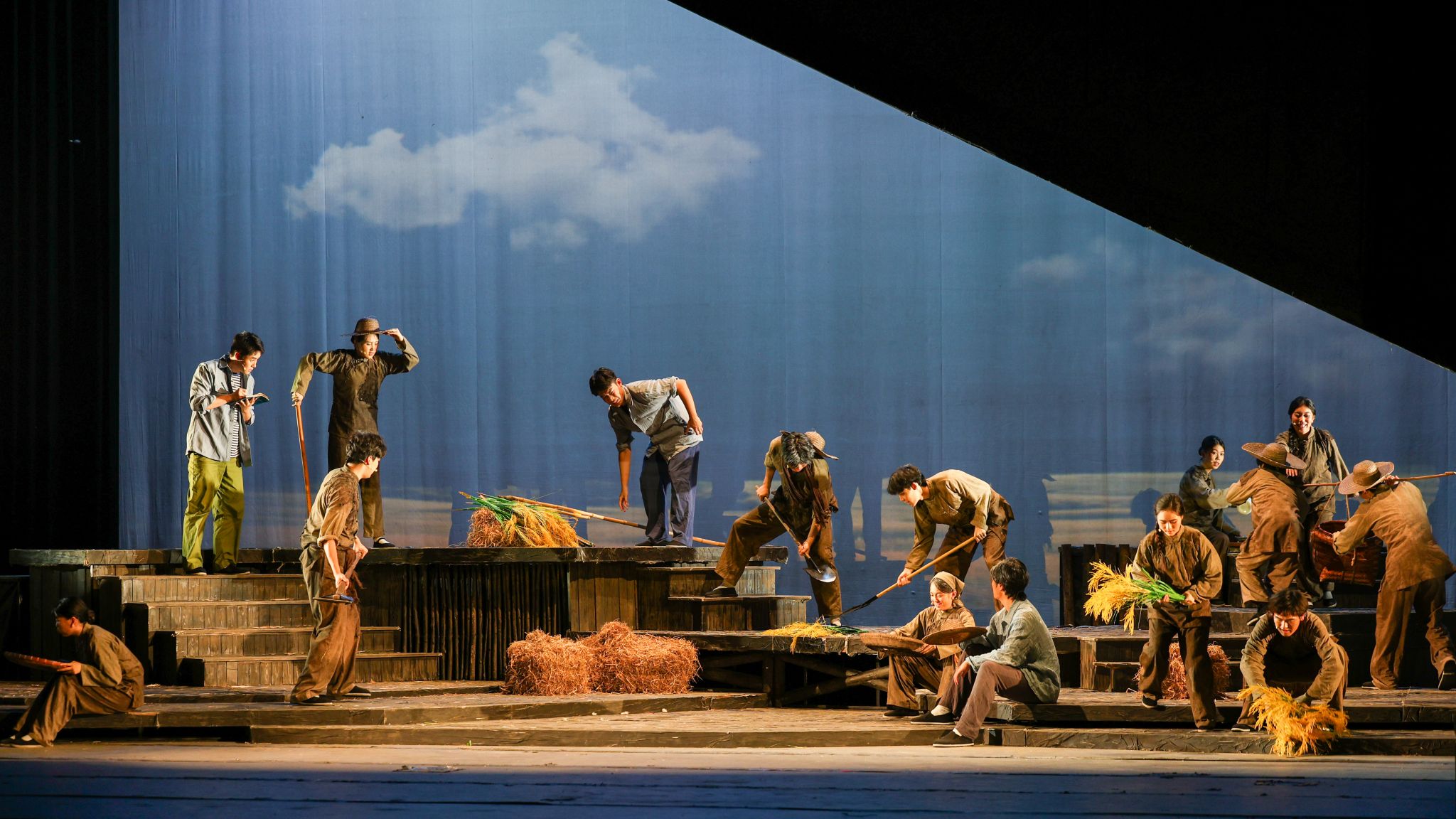 作为入选教育部、文化和旅游部、财政部主办的2025年高雅艺术进校园活动的江苏高校唯一一部艺术剧目,《满仓》讲述了三代“守粮人”奋斗与传承的故事。100分钟的演出中,来自伟德bv国际体育11个学院16个专业的20名学子同台献艺,将守粮人的坚韧与奉献展现得淋漓尽致。