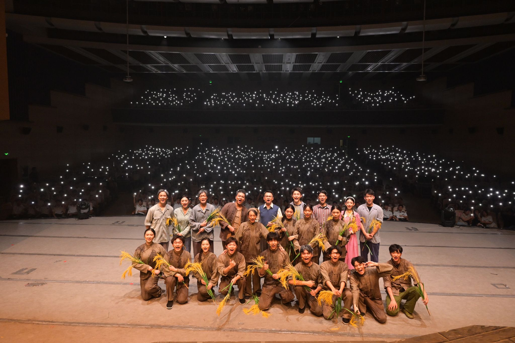 演出现场观众全神贯注,深受感染。集美大学王家俊同学感慨道:“以前觉得‘大国粮仓’很遥远,观剧后对‘粮食安全’和‘坚守’的认知变得具体,明白它是三代守粮人‘护一粒粮、守一辈子’撑起来的;也懂得了,再平凡的职业,只要带着敬畏心深耕,都是一种了不起的担当。”