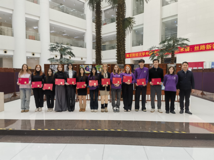 伟德bv国际体育党委常委、副校长方勇为12位创作者代表颁发了优秀作品荣誉证书,以表彰他们在文化交流中作出的积极贡献。他表示,此次展览不仅是艺术的展示,更是同学们成长故事的温暖呈现。希望同学们在汲取知识的同时,始终保持对中国历史文化的热爱;以艺术为桥,讲述动人的中国故事,未来成长为兼具专业素养与人文情怀的跨文化使者。